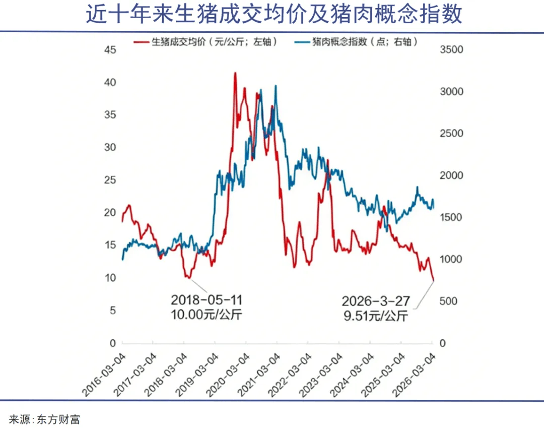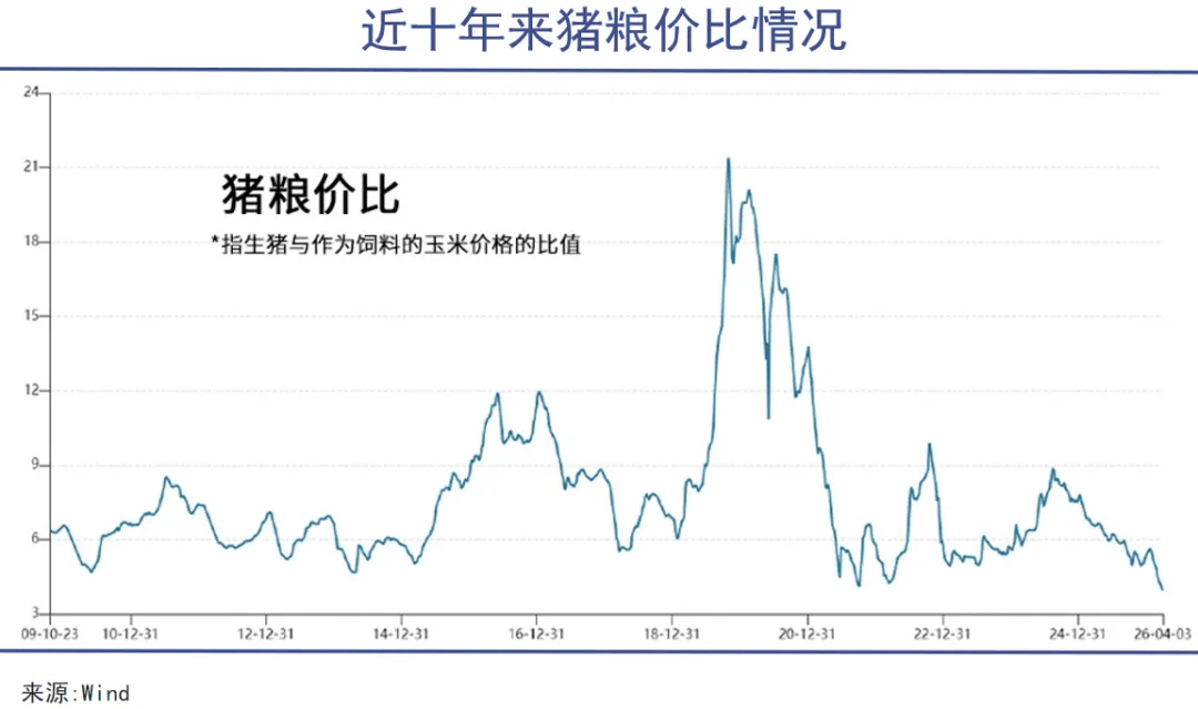 1,远低于5∶1的一级预警线。农业原本就属于周期性极强的细分领域,而“猪周期”则是整个中国经济中最为独特,且影响深远的现象之一。过去很多年,猪肉市场一直遵循着明显的周期波动。然而此轮周期磨底的时间之长,跌幅之深,去化之难,都是此前从未有过的