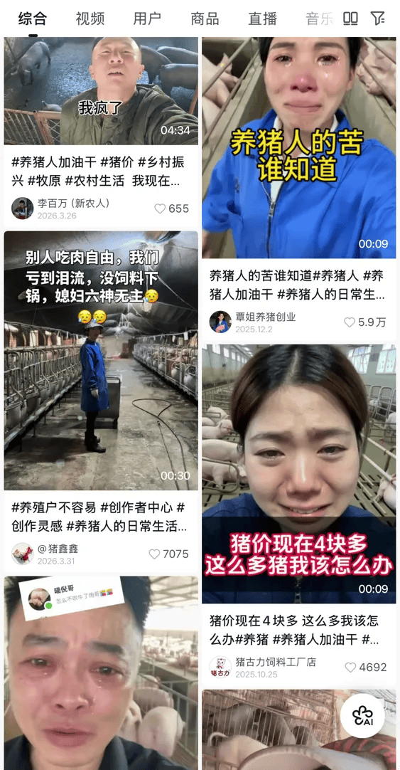 抖音平台上,养猪户哭诉猪价下跌。进入2026年,由于春节假期影响,叠加前期产能集中出栏,供应短暂趋缓,生猪价格出现了短暂的冲高,在1月中旬来到13.24元/公斤的年内高点。